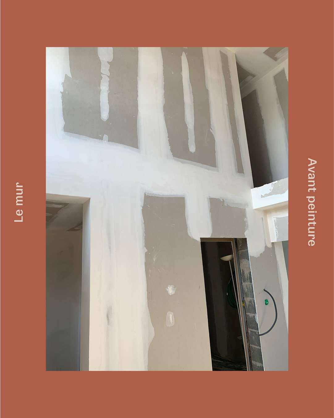Nous avons transformé le hall d’entrée tout blanc de Clotilde et Valentin en une explosion de couleurs chaleureuses.