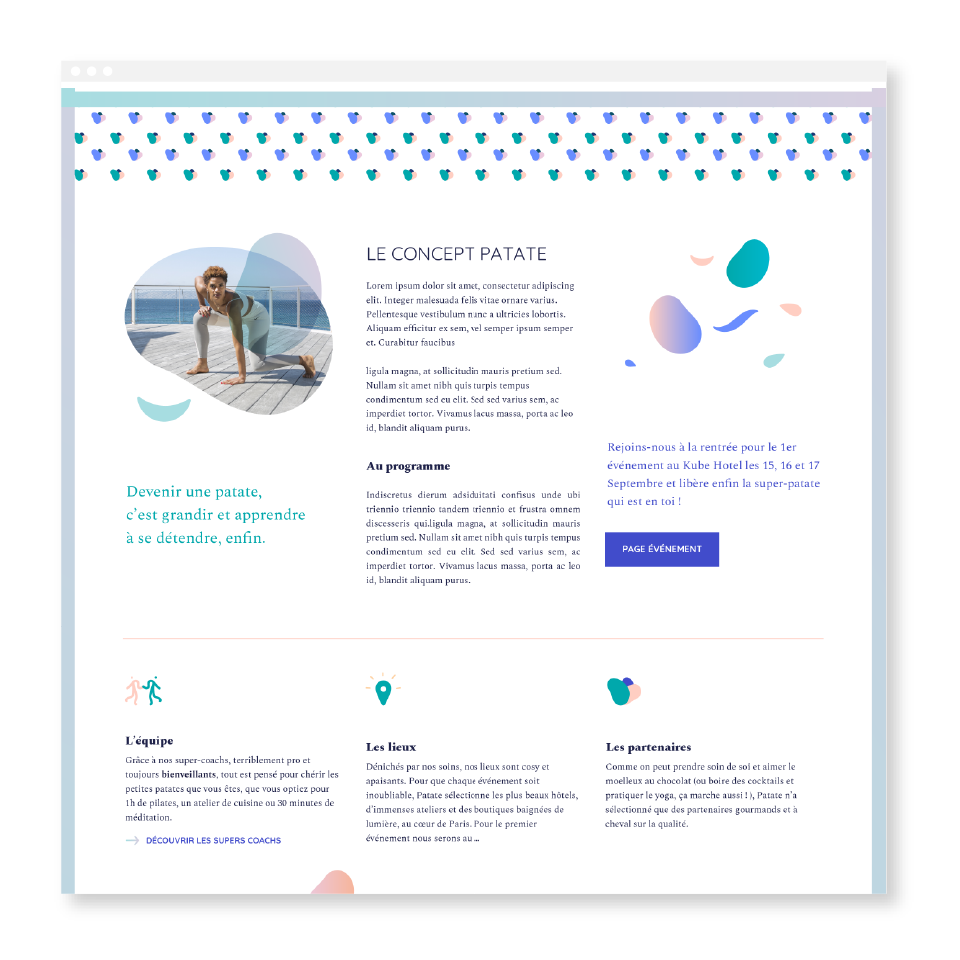 Alors on (re)trouve la bonne patate, celle pleine d’énergie, de couleurs acidulées, pour séduire une cible parisienne, assez féminine et sans complexes !